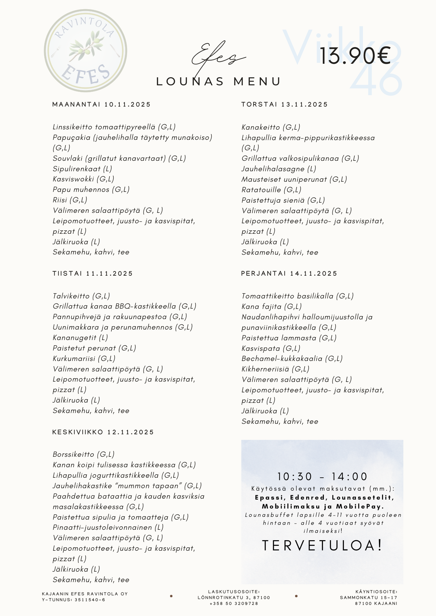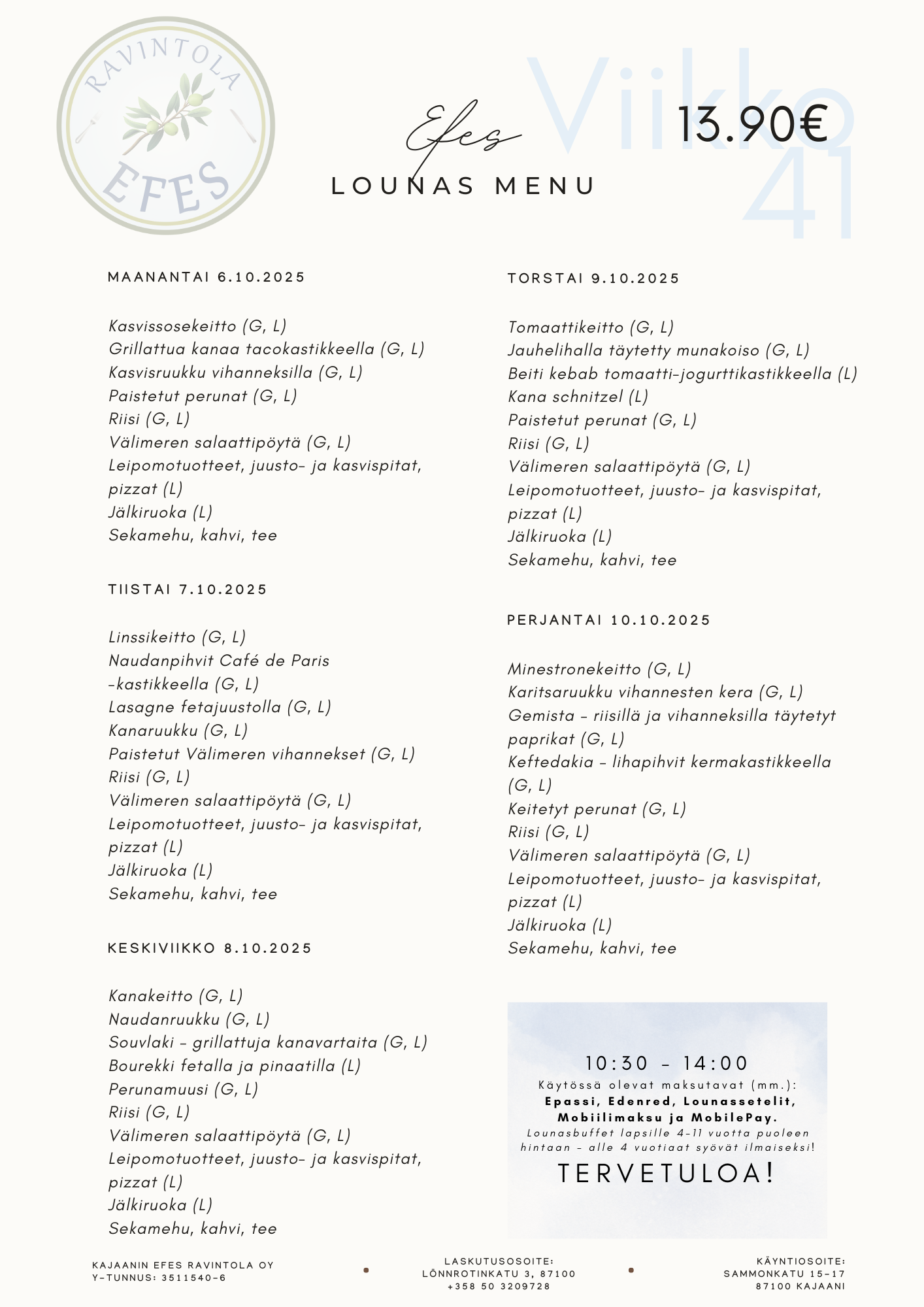 Ma-To 10.30-20, Pe 10.30-21, La 11-21, Su Suljettu, Lounasbuffet Ma-Pe 10.30–14.00